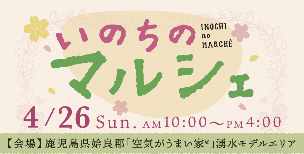 【終了しました】<おかげさまで1周年 感謝>3月22日(日)〜毎月第4日曜日〜鹿児島県姶良郡湧水町の「空気がうまい家®」湧水モデルエリアにて、『いのちのマルシェ』を開催いたします。