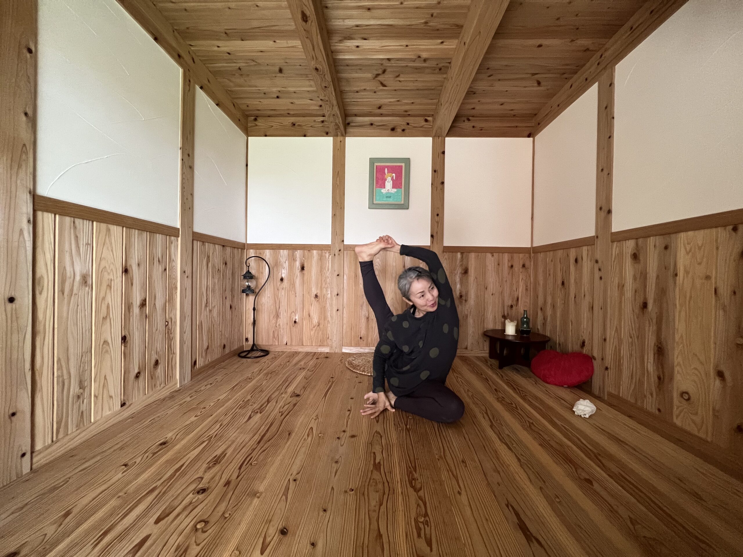 サロンの自然素材を使った空間の気持ちよさを実際にご体感され、ここでヨガ教室を続けていくうちに、M様は「この木が大好き」になられました。