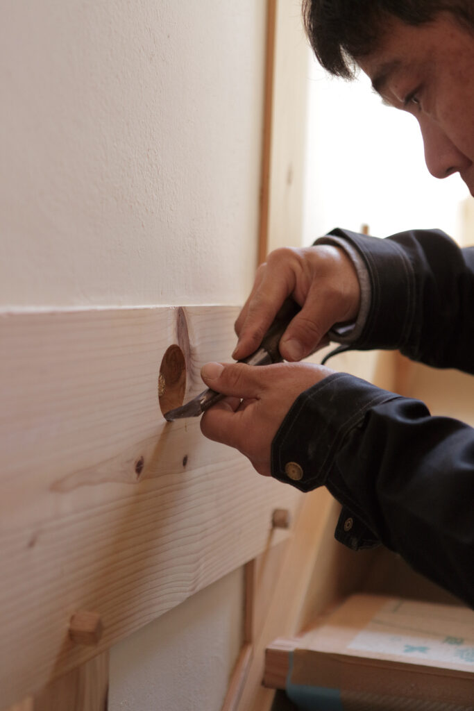 ノコギリやノミを使うときの感触など、大工だからこそ実感する音響熟成木材の品質があるそうです。