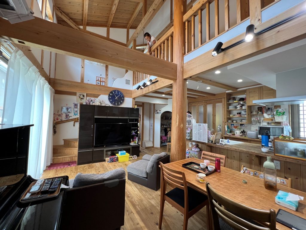 リビングは、大きなおやじ柱と吹き抜けが特徴的です。