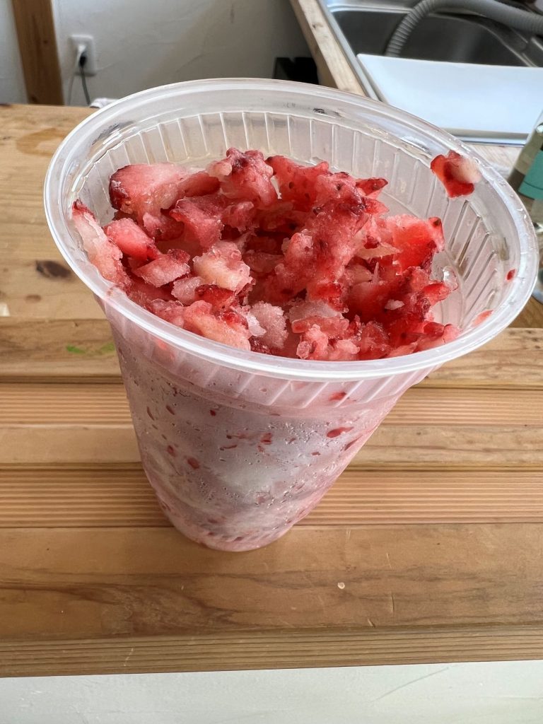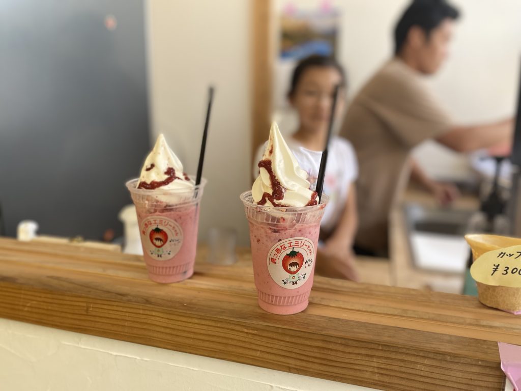 取材の時は、いちごの収穫は終わっていたのですが、ご主人が「いちごフローズンソフト」を作ってくださいました(こちらは通年いただけるとのこと)。