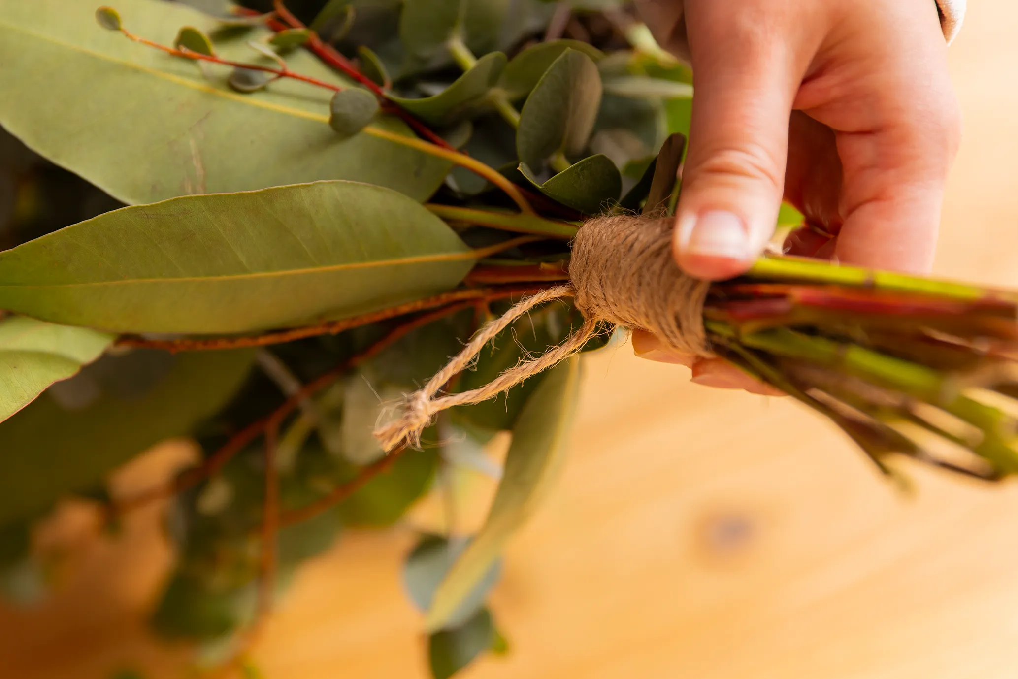 同じ手順で、ユーカリ以外でもスワッグを作ることができます。