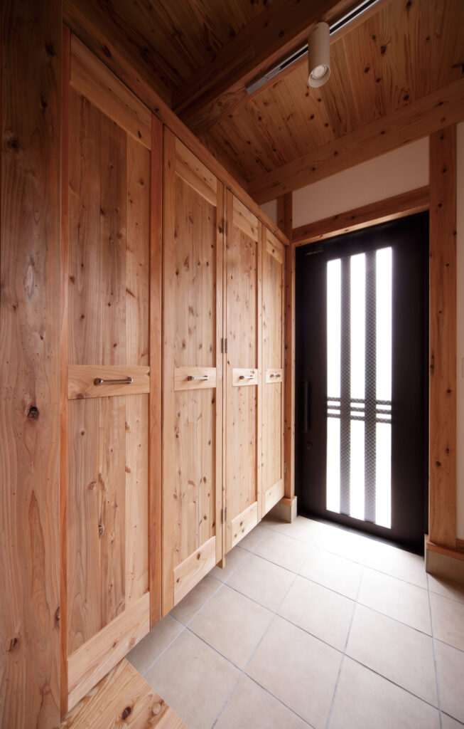 1階シューズBOXも音響熟成木材で臭いが気になりません