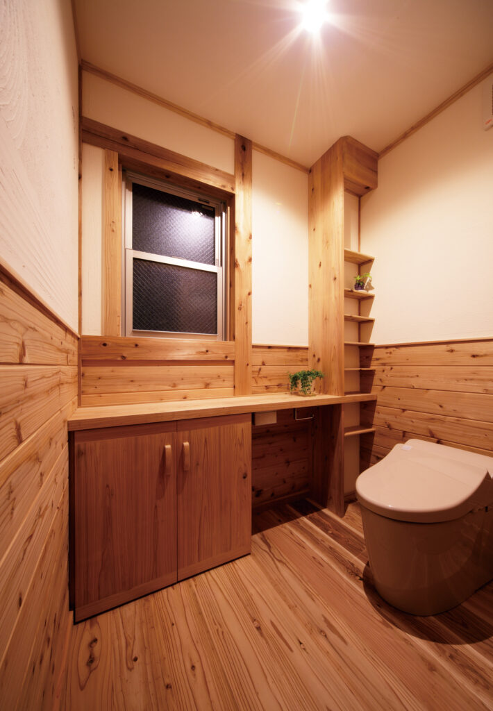 木の香りがすがすがしくてつい長居してしまいそうなトイレ