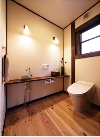 幻の漆喰と音響熟成木材のトイレは清潔で快適