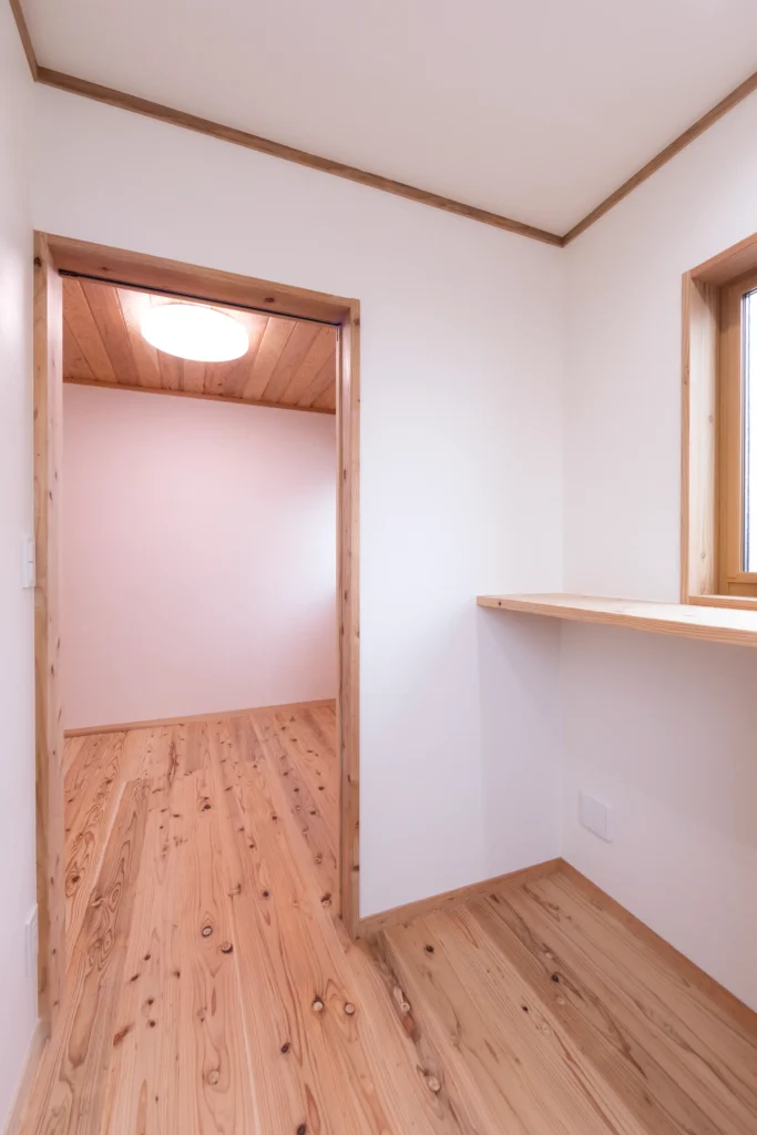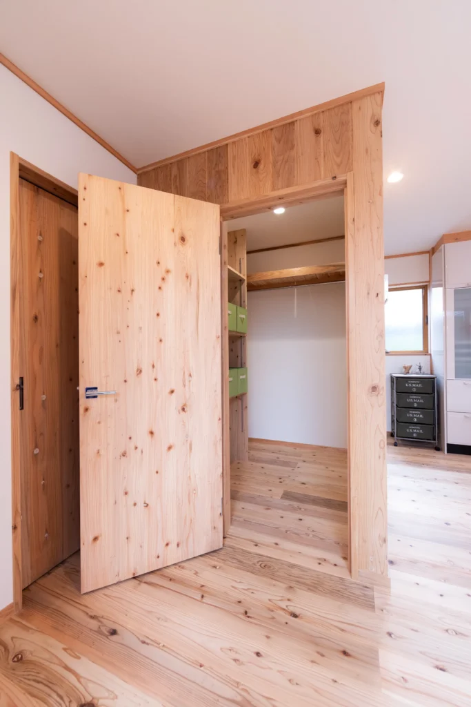 無垢・無塗装の木材と漆喰の自然素材で、こどもたちの成長も健やかになりそうです。