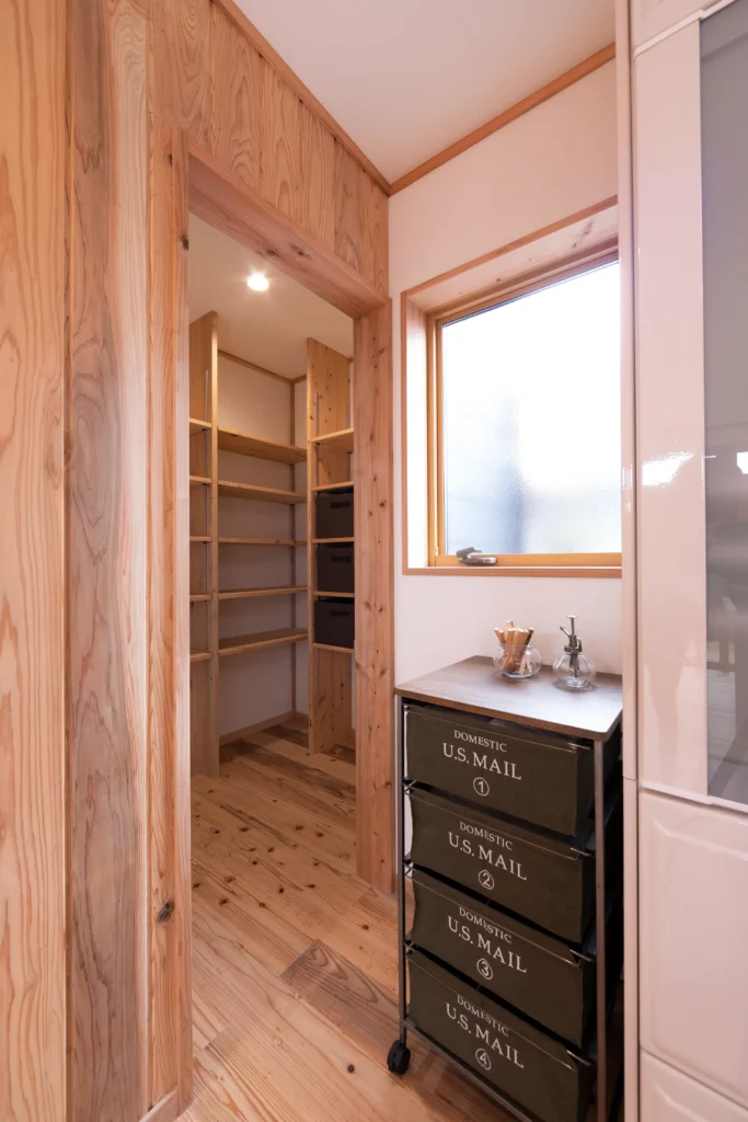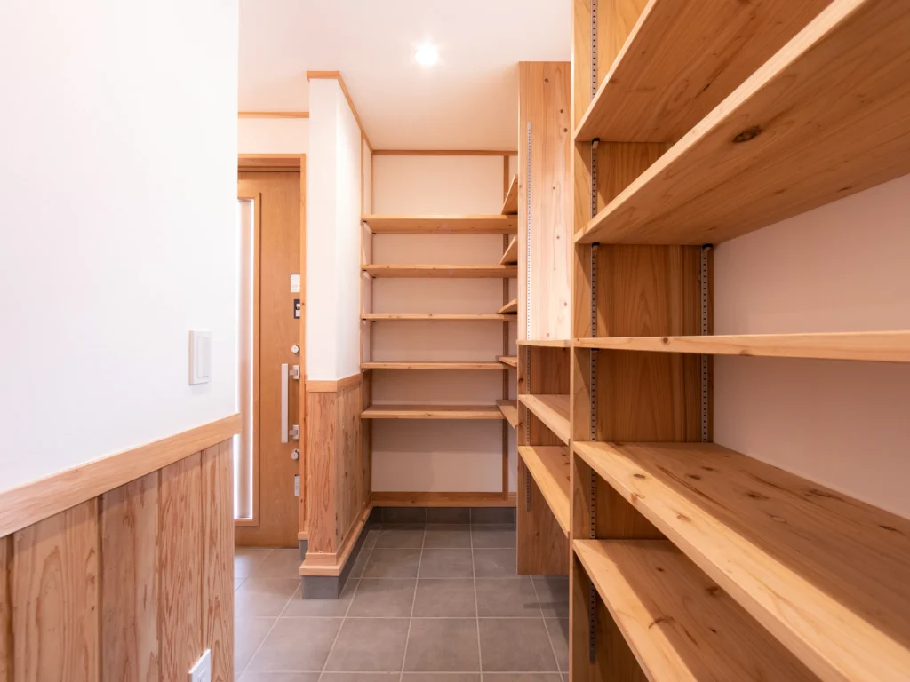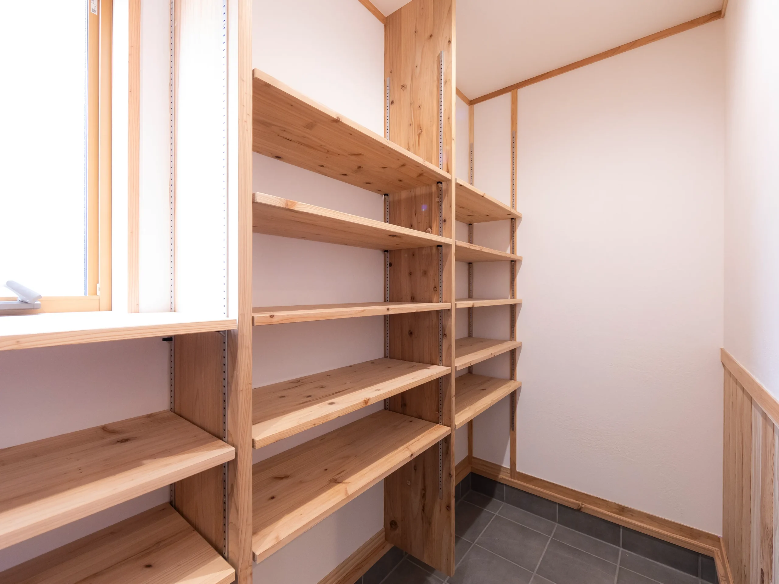 ファミリークローゼットのスペースや、キッチン奥に設けられたパントリーなど、お住まいの全体に収納スペースがしっかり確保されています。