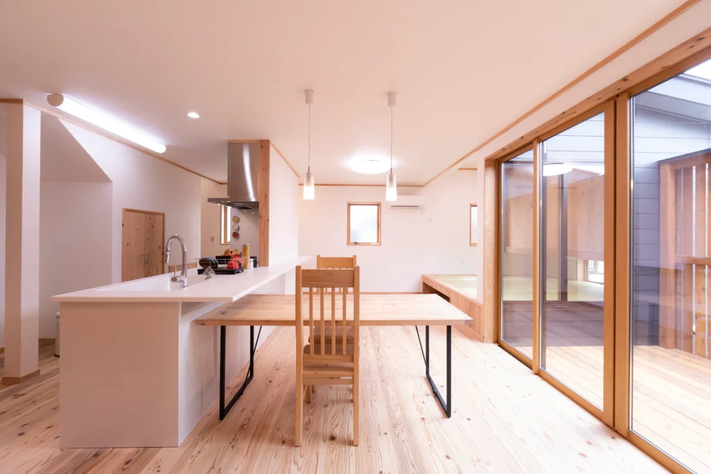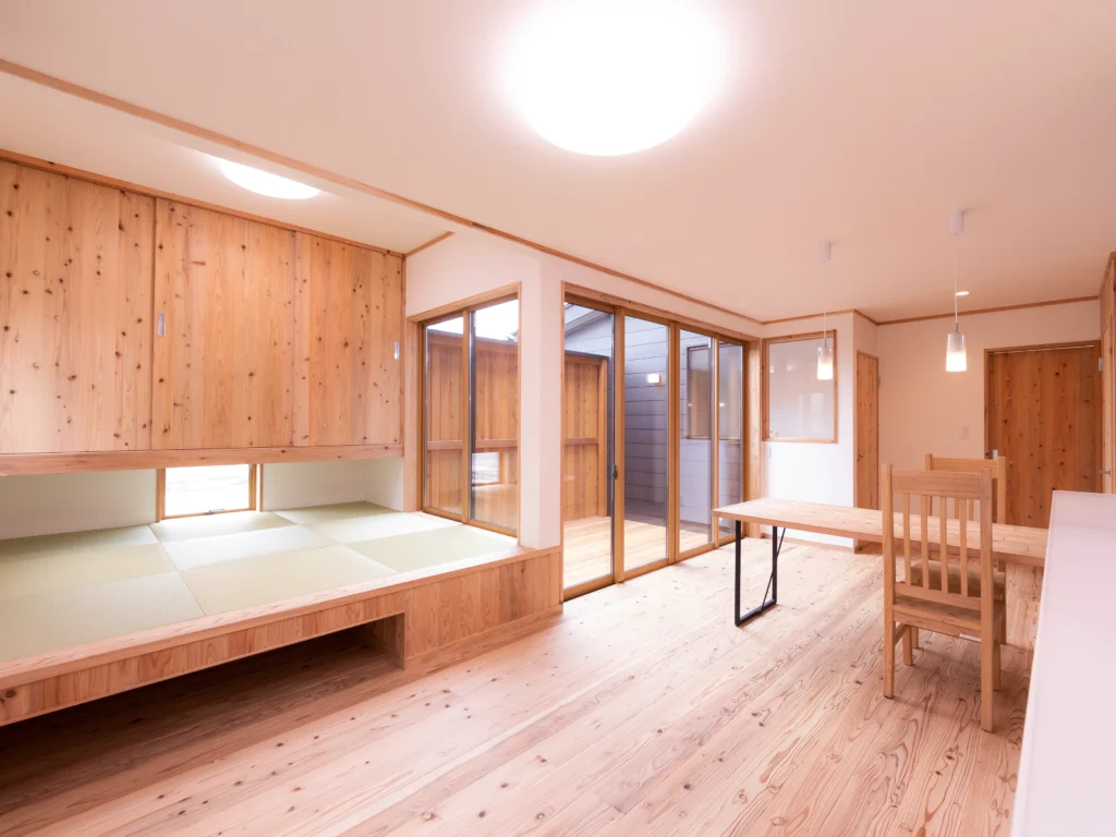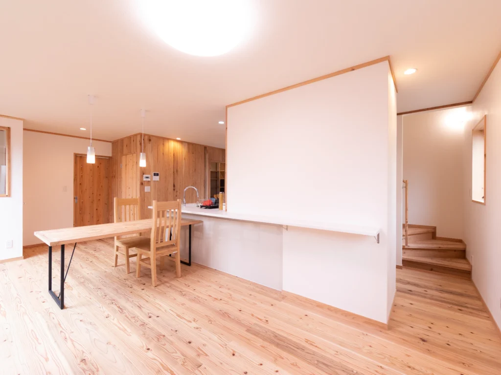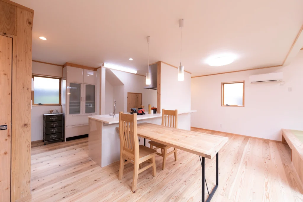自然の恵みが生きている素材の心地よさにつつまれたH様邸の住空間は、内と外が一体となったLDKをはじめ、玄関の土間収納、キッチンや水まわりなどの便利なアイデア、将来を見据えたこども部屋など、すみずみに至るまでH様ご家族のこだわりがかなえられています。