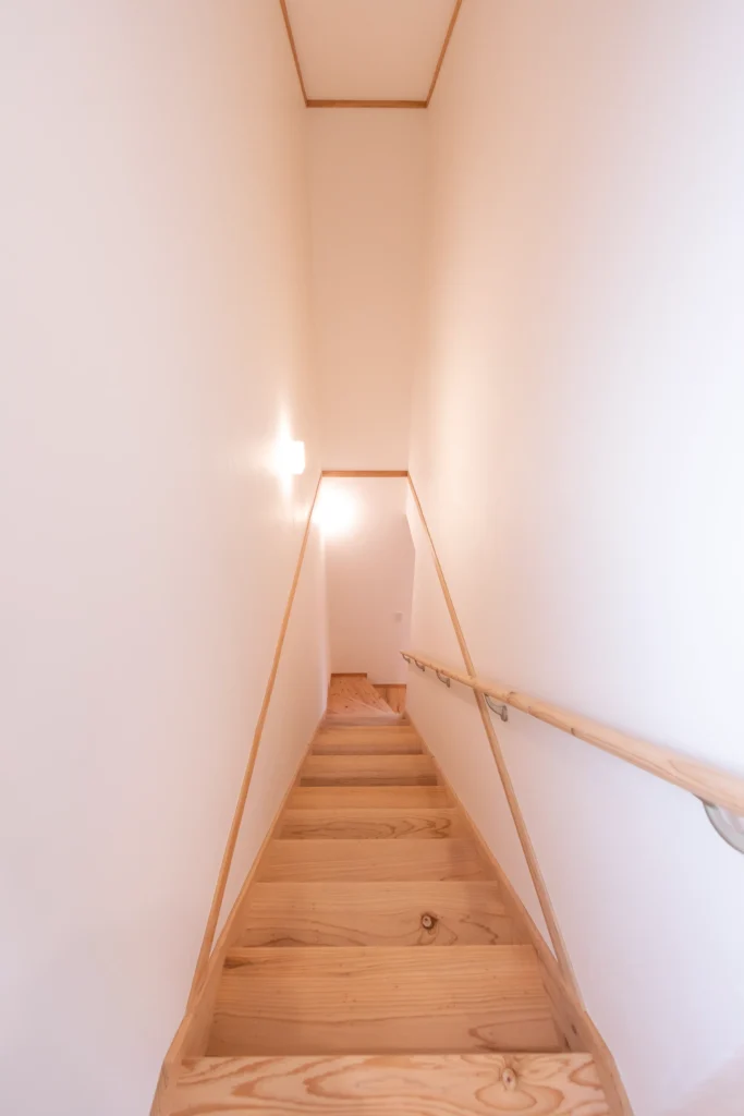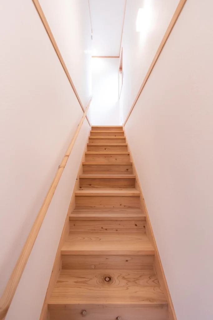 階段は、空間を上手に活用した収納も設けられ、使い勝手の良さと見た目の美しさをあわせ持った才色兼備の仕上がりです。