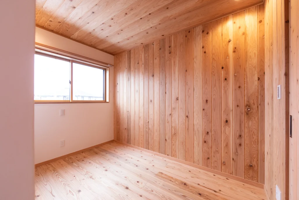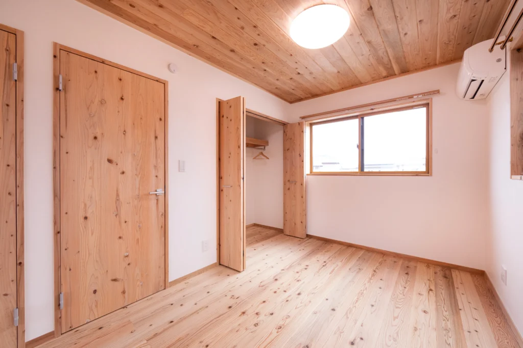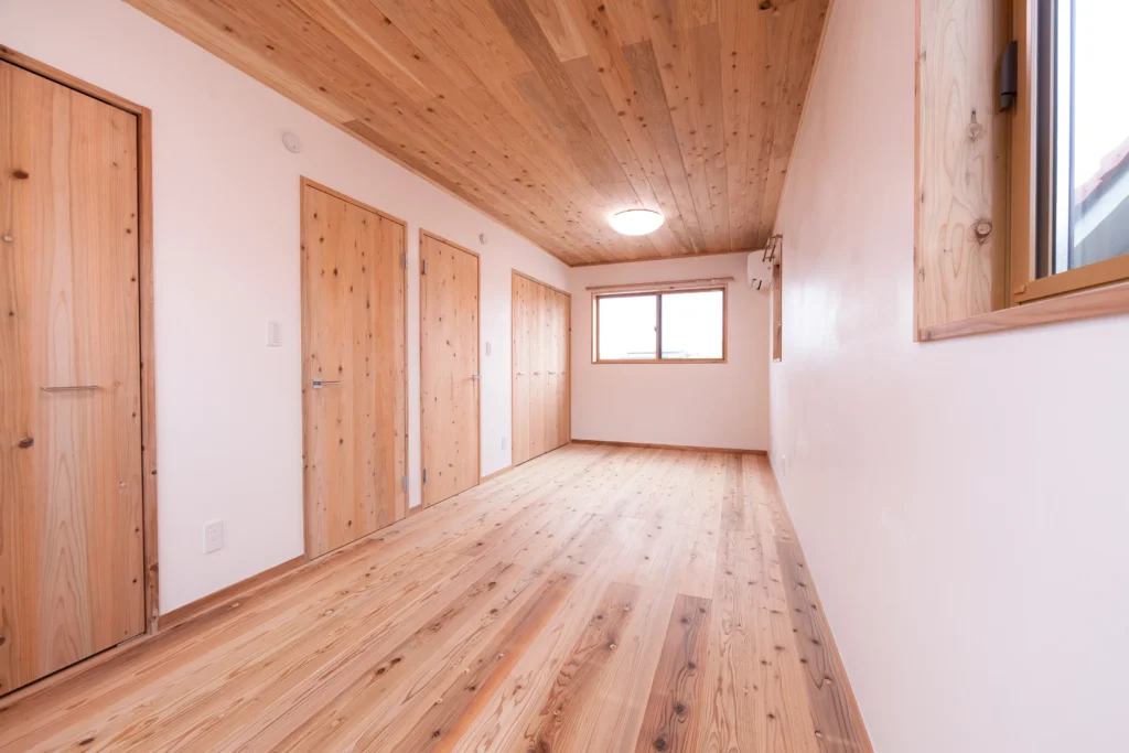 寝室も、無垢・無塗装で自然そのものの音響熟成木材の香りと、室内の不純な物質を取り除く幻の漆喰で、ぐっすりと安眠できそうな心地よさです。