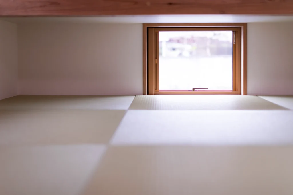 空間のアクセントになっている小上がりの畳スペースは、収納も充実しています。
