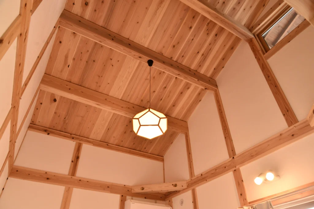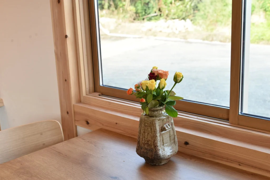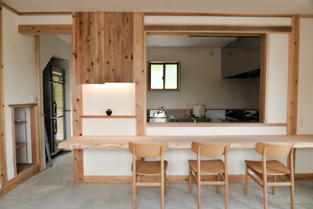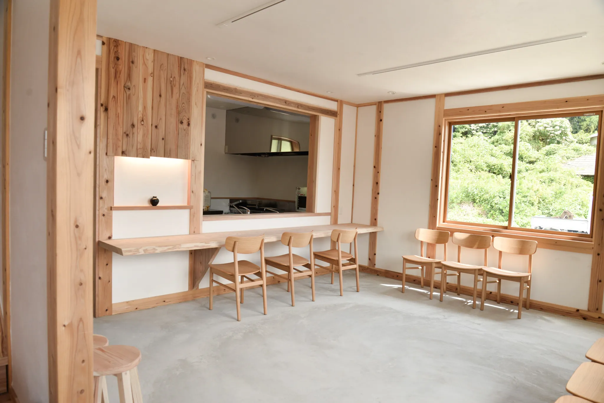 食堂スペースには、無垢・無塗装の木の香りがいっぱいに広がります。