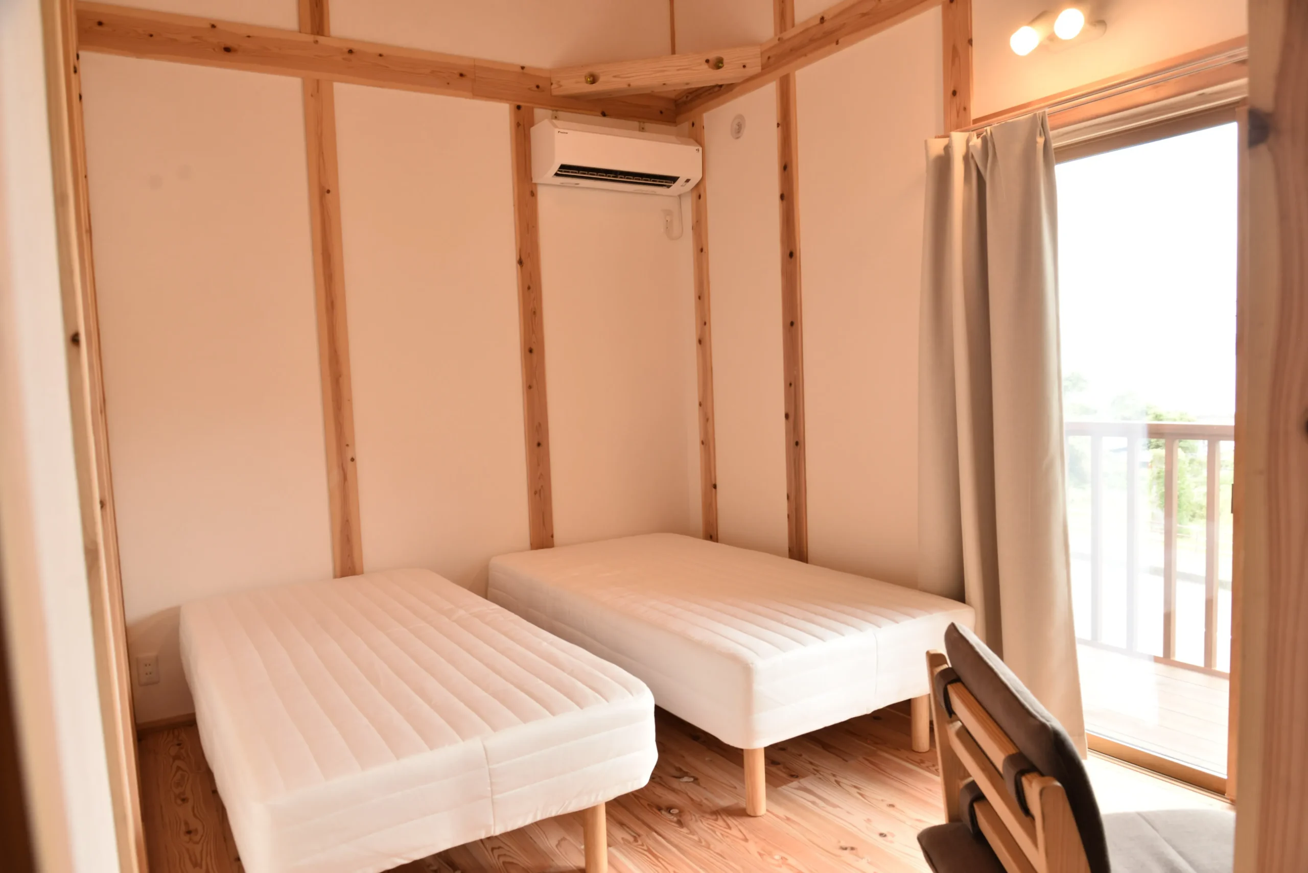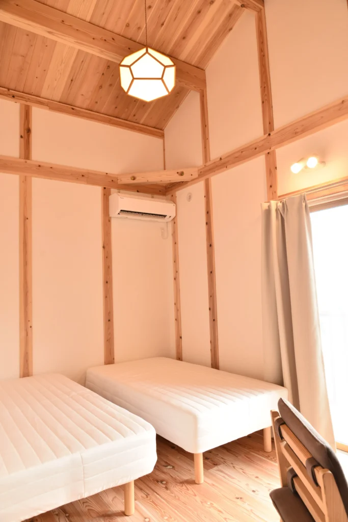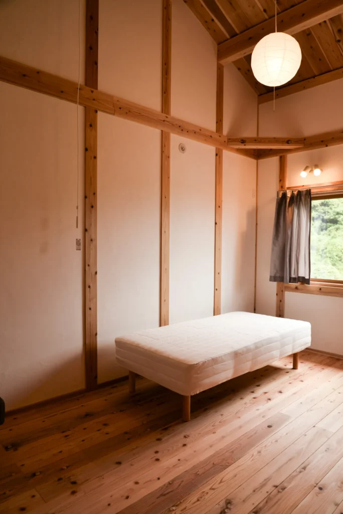 引き戸を引いて中へ入ると、無垢・無塗装の木材と漆喰のやわらかな雰囲気にほっとして、日常とは異なる島の時空間に心と体がゆっくり調和していきます。