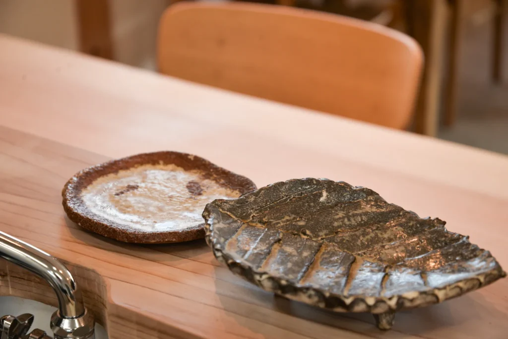 ぬくもりのある陶器の器や花器などから「小さな宿 いずい食堂」さんのあたたかい人柄が感じられます。