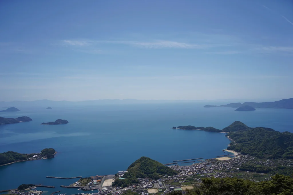 「大島富士」とも呼ばれる嵩山(だけさん)山頂の展望台から見晴らす瀬戸内海。